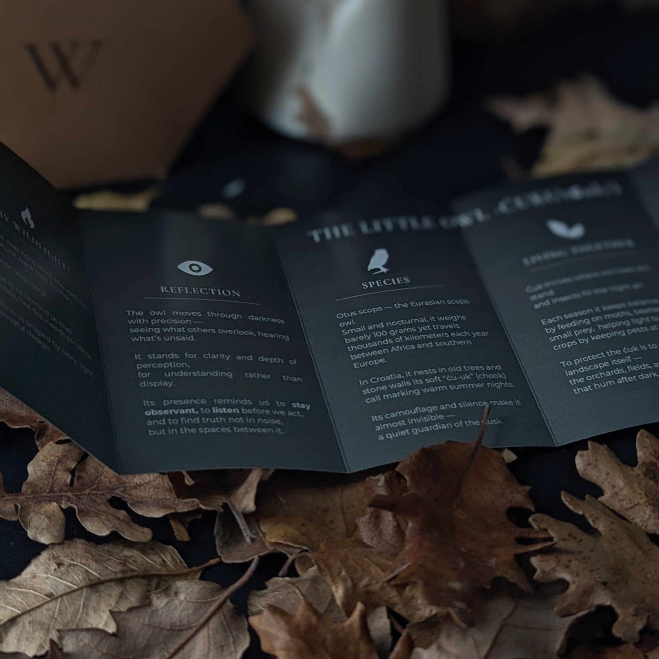 A sculptural candle shaped by the small, alert presence of the Scops Owl (Ćuk) — a familiar voice and a gentle singer of Croatian summer nights.